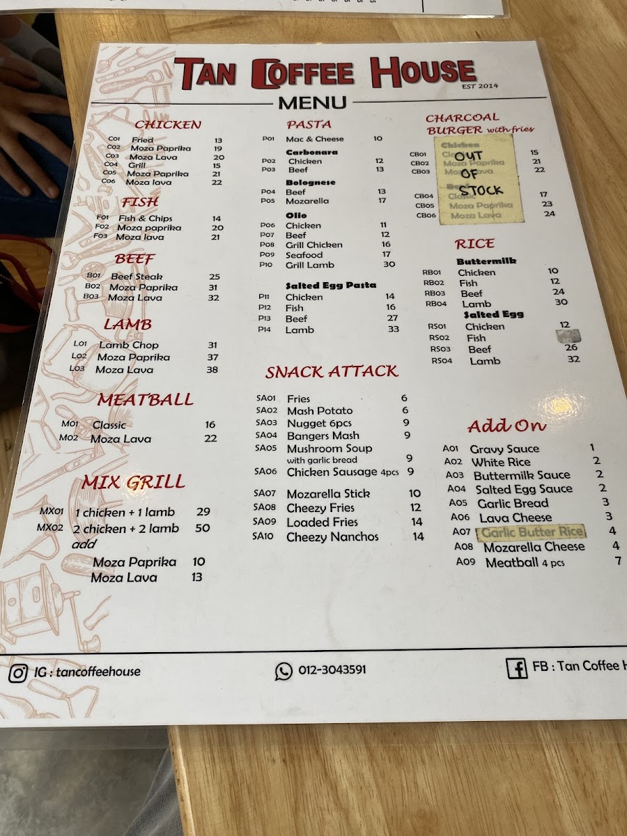 The atmosphere is serene, making it perfect for a quiet meal or even to unwind after prayers. Many have praised the reasonable pricing and generous portions, with highlights including beef aglio olio and chicken chop. Whether you're looking for a satisfying meal or a cozy spot to relax, Tan Coffee House promises a pleasurable dining experience that will have you returning for more.